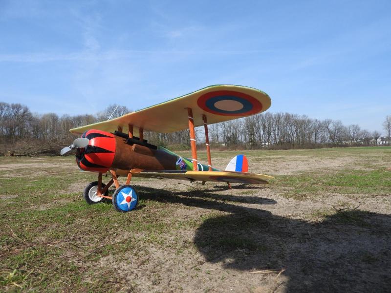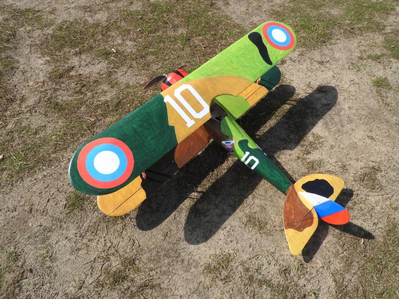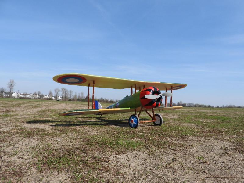 No, modelik się udał. Dostojnie startuje, trzyma się powietrza, słucha sterów i pilota, dostojnie lata i pięknie ląduje bez większej ingerencji ze strony pilota. Ma tylko jedno "ale". Ma nadmierną stateczność poprzeczną. Bardzo opornie robi beczkę, a z lotu na plecach nie daje się wyprowadzić półbeczką tylko muszę robić półpętlę. Dzisiaj (wiało jak w Kieleckiem!) z modelem zapoznał się kolega Jacek -jacenty2004-. Wystartował i ganiał go po niebie bo wiatr rządził na Pałacowej, ale wierzyłem w model i pilota. Z lądowaniem trzeba było czekać na chwilę zelżenia wiatru. Jacek lądował, a ja czekałem aby jak najszybciej złapać model aby uniknąć sponiewierania przez wiatr już na ziemi. Jeśli Nieuport przeżył ten lot i lądowanie tzn że nic gorszego już go spotkać nie może.