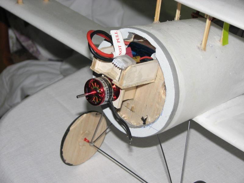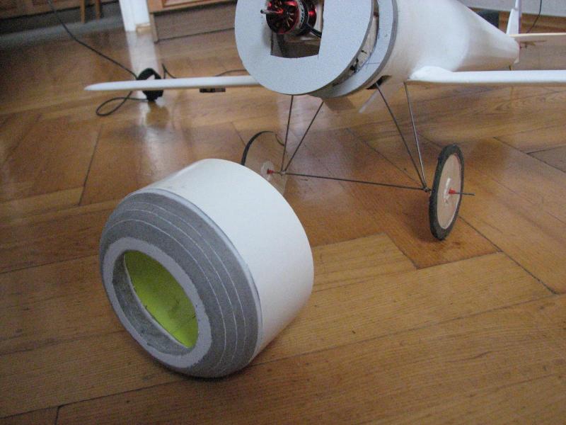 No i Nieuport już w powietrzu. Oto ja do tego doszło. Osłonę silnika zrobiłem z kartonu i klimaporu. Papier ścierny załatwił resztę. Potem akryl bezbarwny, spray styro i taśma klejąca. Po przytrzymaniu modelu "pod pachami", czyli wstępnym wyważeniu musiałem zmienić półkę pod pakiet, na kieszeń A potem wyszło coś takiego: z takim epilogiemNieuport 28c.wmv