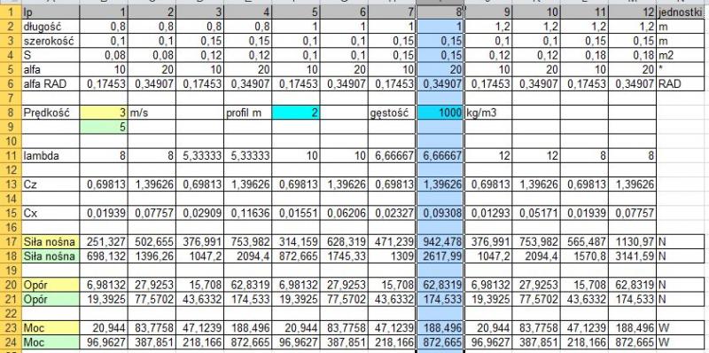 3. przy zwiększaniu długości skrzydła nie wzrastają siły oporu, a wzrasta siła nośna. Co źle liczę?