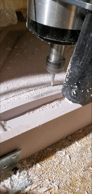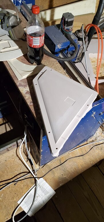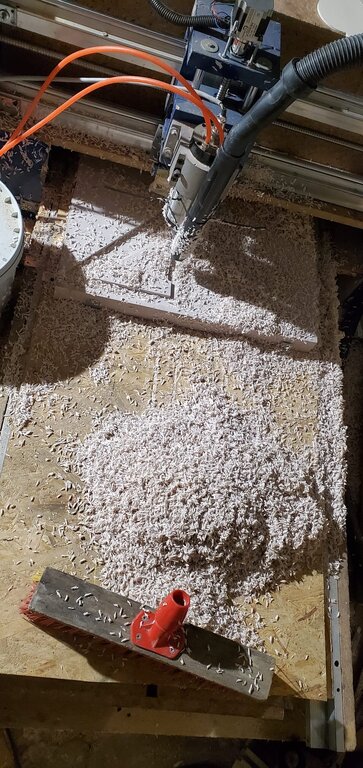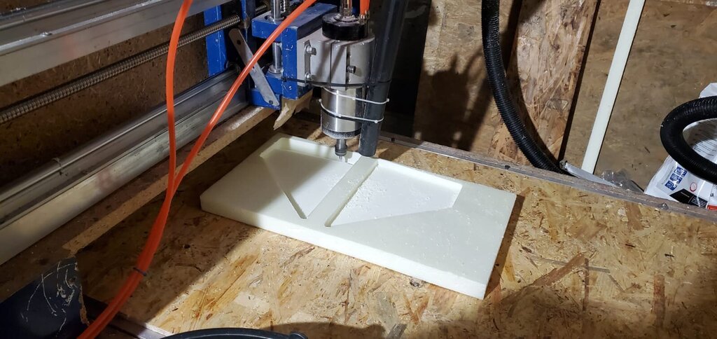 Dziś trochę multitasking, podczas gdy przygotowywałem pozytyw drugiej formy kadłuba, wrzuciłem do frezowania pozytyw statecznika pionowego. Wykonany z płyty Obomodulan 700 terra.