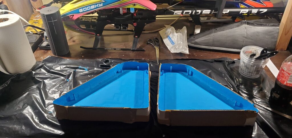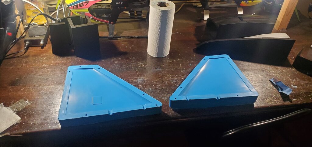 Ostatnio ciężko znaleźć czas na zrobienie dużej formy na kadłub ale w weekend udało się chwile wygospodarować żeby zrobić formy na statecznik pionowy. Aktualnie jeszcze przed polerką bo czekam na pastę ale już po gładzeniu na mokro. Standardowo kilkanaście warstw tkaniny szklanej i wypełnienie z poraveru.