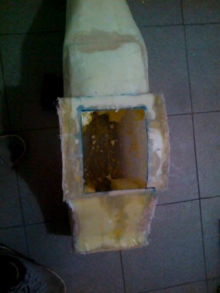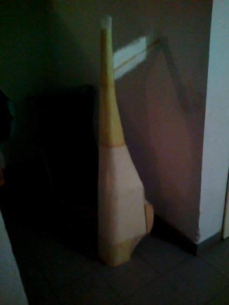 No dobra trza by jakiś update tematu napisać żeby nie było że się załamałem i porzuciłem projekt. Kadłub zalaminowany trzema warstwami szmaty plus usztywnienia z pasków tkaniny aramidowej. Jest no powiedzmy szczerze to jest pierwszy taki kadłub który wykonałem i no źle nie jest ale dobrze też nie. Porobiłem pełno błędów i przez to kadłub nie wyszedł tak jak chciałem ale no jest jaki jest trochę go będę reanimował szpachlą itd. ale poleci. Jutro jadę do modelarskiego po rurę aluminiową. Wstawię wręgi ze sklejki w ten kadłub już po "wytopieniu" rdzenia i przez te wręgi będzie masywna rura aluminiowa przechodziła. Będzie szła od końca aż po półki drewniane gdzieś w 3/4 długości kadłuba(licząc od końca). Na razie tylko tyle i jeszcze jedno zdjęcie. W weekend będę wytapiał rdzeń i jako że idą ferie to prace ruszą do przodu dość mocno. -