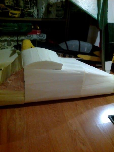 Mały postęp prac, przyklejony profil skrzydła. Jeszcze pare godzin szlifowania i kadłub będzie gotowy do pokrywania tkaniną szklaną.Musze jeszcze wyciąć i przykleić statecznik pionowy. Zastanawia mnie może nie tyle brak zainteresowania tematem bo widzę że liczba wyświetleń stale rośnie ale brak odpowiedzi, porad, uwag przez użytkowników tego forum. -