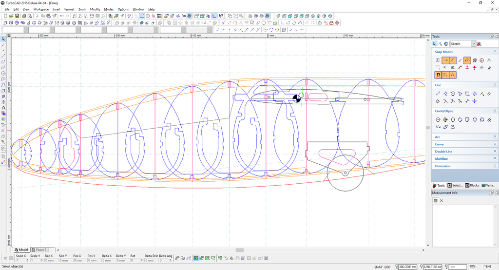 Plany prototypu Foki, opisanej tutaj: http://forum.aerodesignworks.eu/viewtopic.php?f=57&t=1417 Jeden prototyp lata u kolegi, mój jeszcze w budowie. Plany posiadają opisane w relacji z budowy, drobne niuanse, typu: jedno o 3mm za krótkie żeberko czy słabe pasowanie przejścia pionowy / kadłub. Jednak przy odrobinie pracy można zbudować całkiem fajny model. Dane techniczne: Rozpiętość: 2,2,m (2,3 z kadłubem) Cięciwy skrzydła: 200/130mm Wydłużenie płata: 13,3 A: 0,46 Wznios: 2 stopnie Kąt zaklinowania: 2 stopnie Profil: MH32 Pliki są przeznaczone tylko na użytek własny. Nie dopuszczalne jest ich upublicznianie poza innym niż linkowanie tego tematu. Pliki są dostępne na licencji Creative Commons Uznanie autorstwa-Użycie niekomercyjne-Na tych samych warunkach 3.0 Unported Formatka i plany budowy: