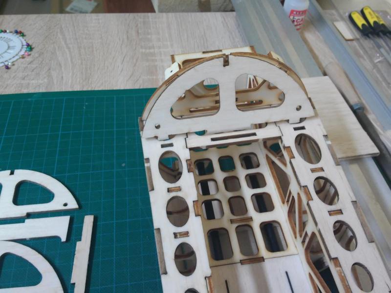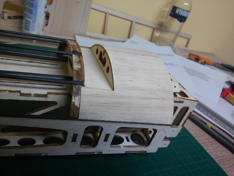 Nie masz za co przepraszać, każdy ma przecież jakieś życie poza modelarstwem i to niestety - przeważnie większej wagi niż to hobby A poniżej realne efekty Twoich dzisiejszych wskazówek: Te małe elemenciki, które - jak napisałeś - trzeba wklejać cieńszą stroną od zewnątrz, stronę zewnętrzną mają ZAOKRĄGLONĄ. Szacunek - nawet przy takich drobnych elementach wszystko jest dopracowane...
