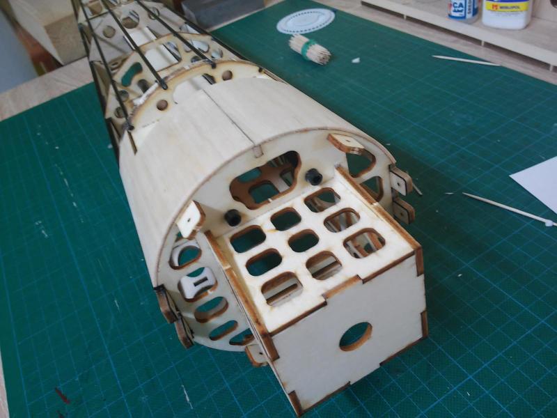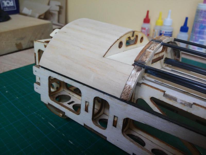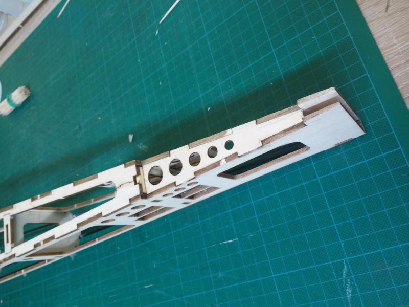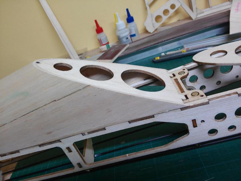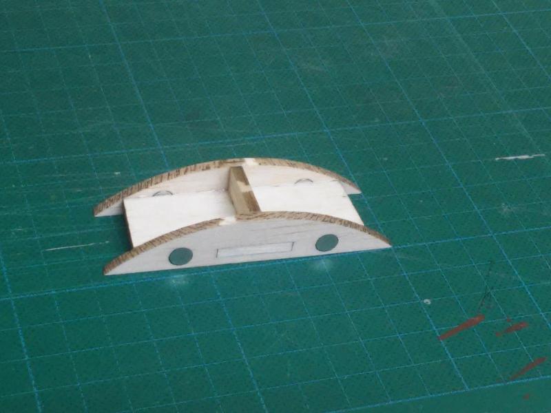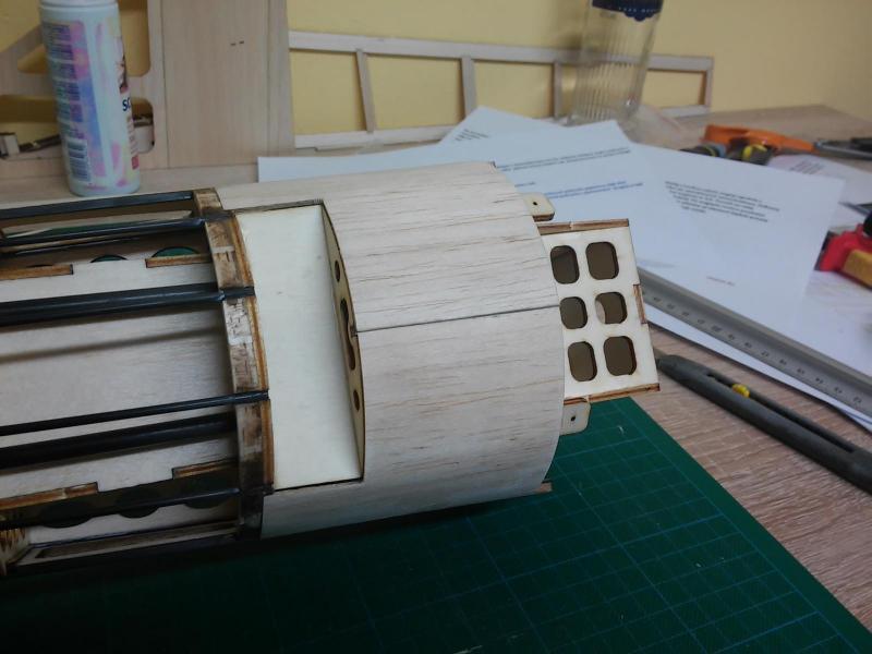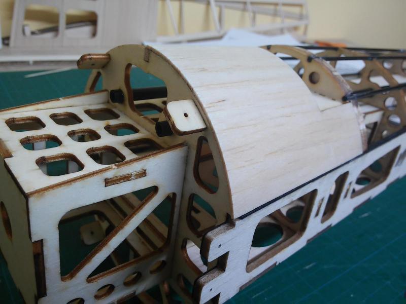 Nie, musiałem to zrobić dzisiaj, bo jutro żona mnie wyciąga z synem na weekend w góry.... No cóż - rodzina też ma swoje prawa, w końcu ferie.... Dlatego nie poszedłem wg Twoich wskazówek, ale sądzę że wyszło niezgorzej: - elementy nasączyłem jakimś płynem z alkoholem, od strony zewnętrznej. - przyłożyłem raz, drugi, trzeci, za każdym razem kładąc po przymiarce element na matę, i przycinając nożykiem do aluminiowej linijki. - nałożyłem dookoła na wręgi i proste elementy gęsty cyjan, przyłożyłem, potrzymałem.... - druga strona identycznie.... i voila (chyba tak się to pisze... )