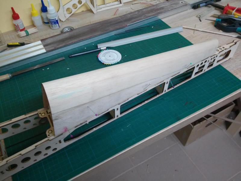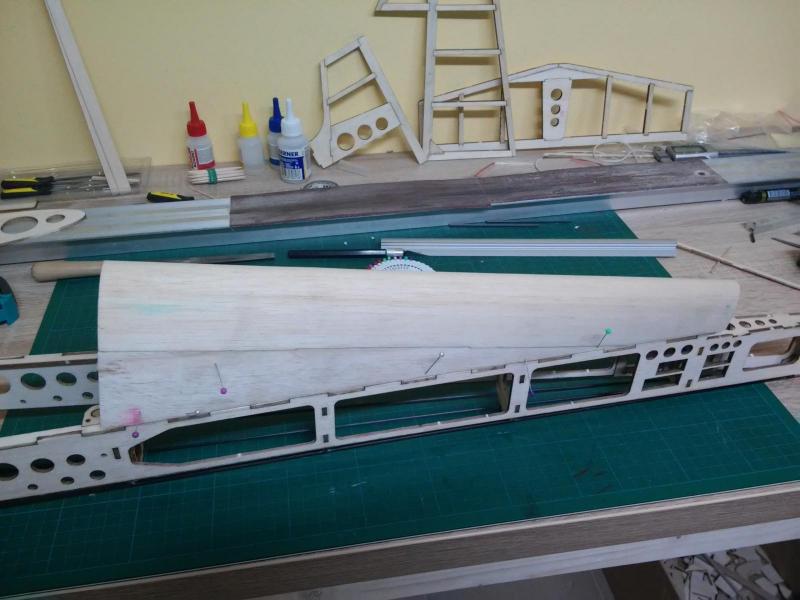 To już po niedzieli. Z tym nasączeniem to grubo nazwane, prysnąłem dwa razy żeby odrobinę zmiękła balsa, na upartego może i na sucho dałoby się zrobić, choć oczywiście ryzyko pęknięcia byłoby większe. Edit: Sprawdziłem z rana - nic się nie zapadło