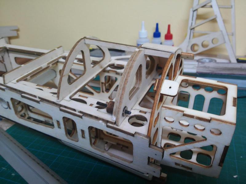 Poczekaj do oblotu Niemniej - składa się fajnie, tym bardziej że to mój pierwszy drewniany model, kiedyś na próbę zacząłem składać jakiegoś malucha z Guillowsa, ale skończył w piecu. Wszystko było za małe i za delikatne i nie do końca wycięte (bo to jeszcze nie laserówka tylko od noża było wycinane). Tak więc - konstruktywna krytyka mile widziana... Wczoraj znowu mały kroczek do przodu: teraz dopiero będę kończył kabinę.