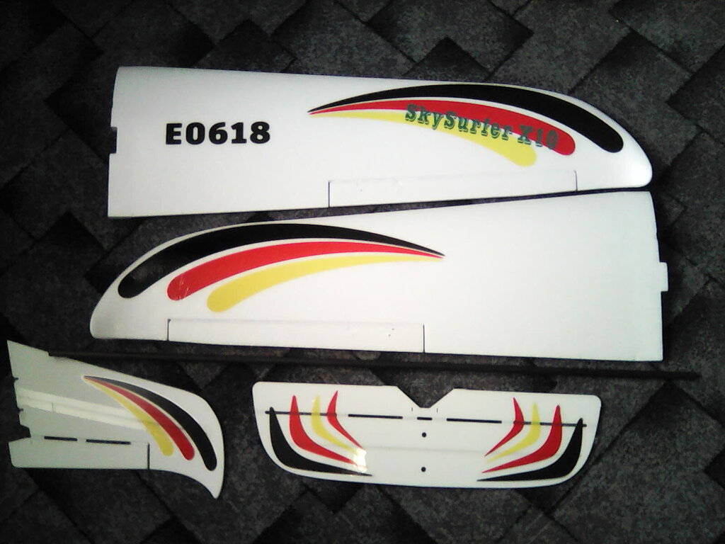 Zestaw modelu Sky Surfer X10. Wersja KIT. Specyfikacja: Rozpiętość skrzydeł: 1400 mm Długość kadłuba: 1120mm Waga w locie: 870g https://www.olx.pl/d/oferta/model-sky-surfer-x10-samolot-rc-motoszybowiec-rc-model-rc-CID767-ID14Lr2g.html?bs=olx_pro_listing