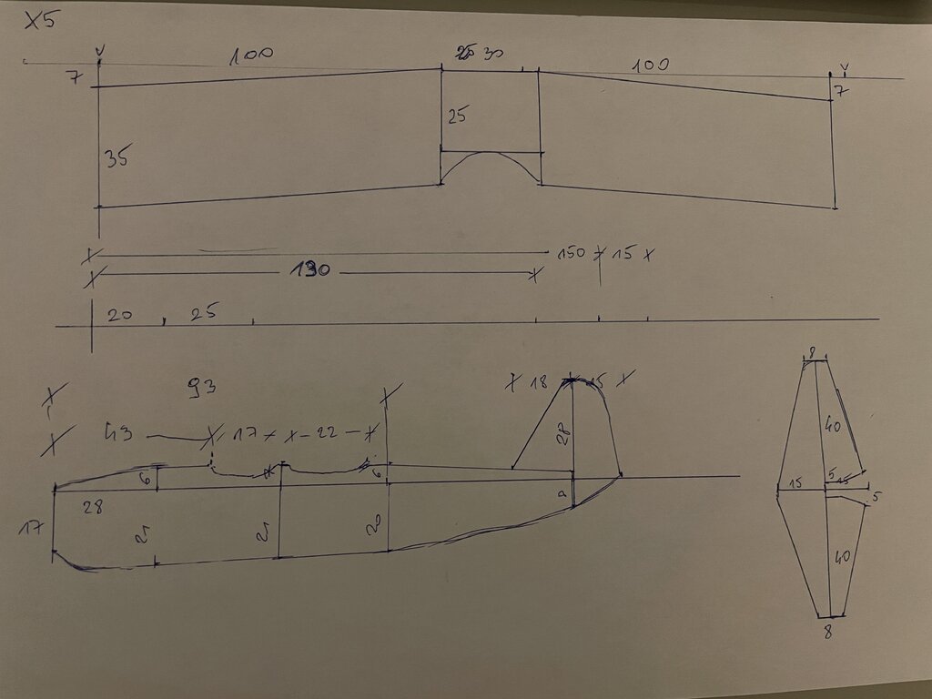 Pooglądałem model Buschtrottel. Wygląda dobrze. Ale przeglądając nasze forum i niedokończony projekt Kolegi MASK nie wiem, czy na otarcie łez nie zrobię jakiś choć trochę podobny z płaskim kadłubem RWD-14. Poczyniłem pierwsze rysunki na podstawie zdjęć z konstrukcji Marcina (MASK) aby z grubsza złapać wymiary. Profil pewnie będzie KFM. -