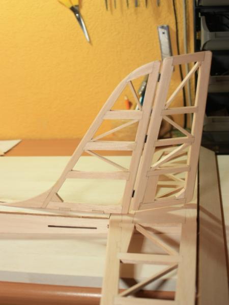 Po szlifowaniu pod kołpak niewiele z tego obalsowania zostało ale za to fajnie się to obrabiało. Co do dźwigara węglowego w uszch to zrobiłem na sztywno. Najpierw po kropelce CA a potem jescze zywicą. Niestety nie mam więcej zdjęć z budowy skrzydeł bo jakoś tak pędziłem z robotą, że o fotkach zapomniałem. Ale w zasadzie pułapek żadnych tam nie było. MPX`y jak wklejałem, to trzy nieużywane piny porozgnałem na boki i zalane zywicą do żebraposłużyły jako dodatkowe wzmocnienie mocowania tych wtyków. Rurki węglowe do bagnetów zakończyłem dokladnie na 3 żebrze i do niego przykleiłem krążki blokujące ze sklejki topolowej (zostały po wyjęciu z żeber). W uszach najpierw przyleiłem dolne kesony, później dokleiłem na nie ostatnie żebro z balsy 6mm, zrobiłem wcześniej rowki w żebrze na i listwie spływu oraz z przodu zebra tak , że jest wsunięte w grzebieniową listwę natarcia jak pozostałe żebra. Listwa ta podobnie jak listwa spływu wystaje poza ostatnie żebro z balsy 3mm. Na to górne kesony. Potem wyszlifowane i do tego na zywicę doklejone zakończnia uszu ze sklejonych ze sobą deseczek balsowych 6mm. Zakończnia te są trochę cieńsze niż profil ostatniego żebra wiec w najgrbszym miejscu przykleilem jeszcze od góry kawałek balsy 1,5mm i dopiero wtedy szlifowanie do profilu zebra. Żebra tam gdzie nie ma lotek i klap czyli na spływie kończą się mniej więcej w połowie spłuwu, więc po przyklejeniu dolnych elementów przedłużyłem je ściętymi pod kątem kawałkami balsy, dokleiłem jeszcze listewki balsowe na łaczeniu kesonów spłuwu z listwą spływu(ta z nacięciami pod żebra). Uzyskałem w ten sposób bardzo mocną konstrukcję tego elementu. W podobny sposób zrobię lotki i klapy. -