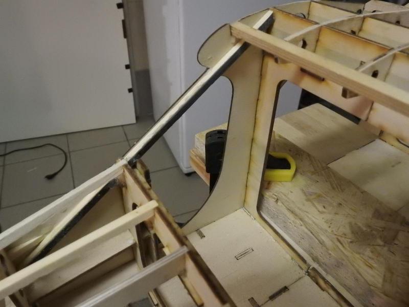 23. Przygotowałem mordę do krycia balsą. Wyażurowałem firewalla. Na rcgroups mówią, że słupek A trzeba wzmocnić, więc dołożyłem węgla na żywicy epoksydowej.