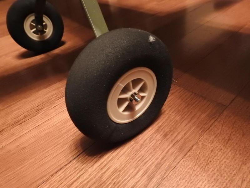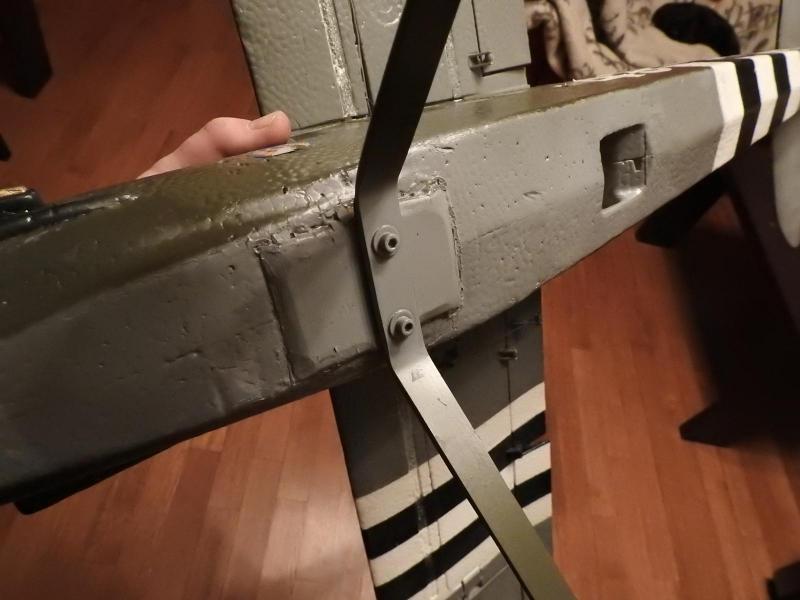 7. Zakupiłem takie podwozie: https://www.ef3m.pl/pl/p/Podwozie-z-laminatu-szklanego-do-modeli-1000mm/1519 Ze sklejki lotniczej 6mm wykonałem podstawę o wymiarach 90x55m. W podstawie zamontowałem 2 nakrętki kłowe M4. Podrzeźbiłem w kadłubie gniazdo 90x55mm o głębokosci około 3mm. Wkleiłem w kadłub podstawę z zamontowanym podwoziem na kleju poliuretanowym Soudal 66. Potem pomalowałem bele jak. Koła zakupiłem w Nastiku: http://www.nastik.pl/kolo-piankowe-100mm-p-3685.html Okazało się, że są na ośki 5mm, miałem tylko ośki tylko 4mm. Znalazłem rurkę alu 6mm, rozwierciłem koła na 6mm, wkleiłem rurki alu, przewierciłem rurki na 4mm. No i tak wyszło. Ja się nie przejmuję detalami w tym modelu, on służy do codziennego latania i treningu, więc wygląda jak wygląda.
