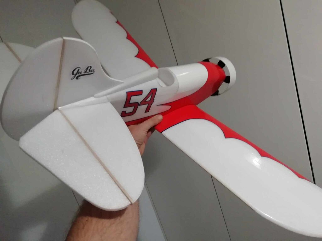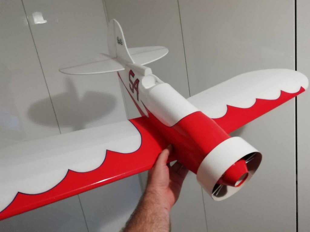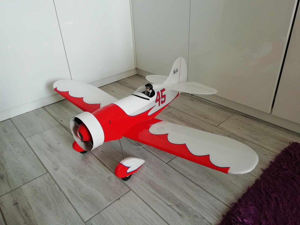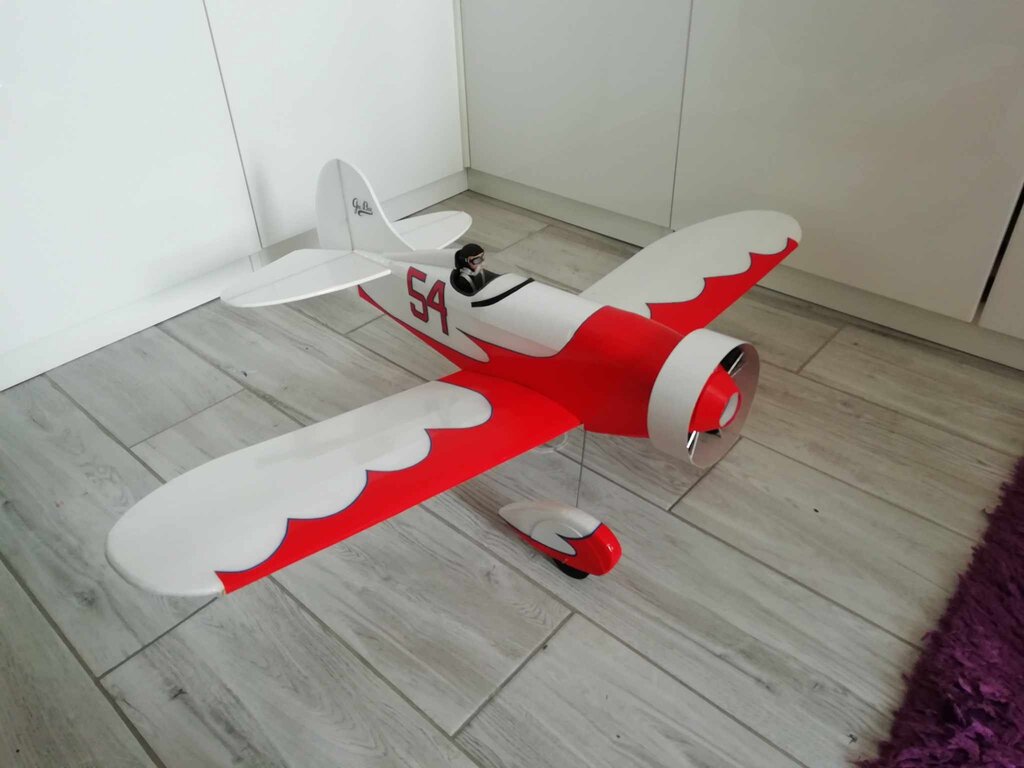 Po modelarskiej przerwie nasmarowałem coś prostego i mam nadzieje przyjemnego w locie . Luźna interpretacja sportowego samolotu z okresu międzywojennego GEE BEE "E" Biały XPS Diall , 1m rozpiętości , 3s, profil wklęsły -bez lotek . Kryty bezbarwną taśmą pakowa plus kolorowe zwykłe samoprzylepne folie . Taki FiteTest style . "Cylinderki" -mało i chudo - kompromis między ilością faktyczną a zminimalizowaniem oporu w locie (jeszcze będą malowane i lekko wzbogacone o jakieś detale ) , pierścień silnika na razie tymczasowy .