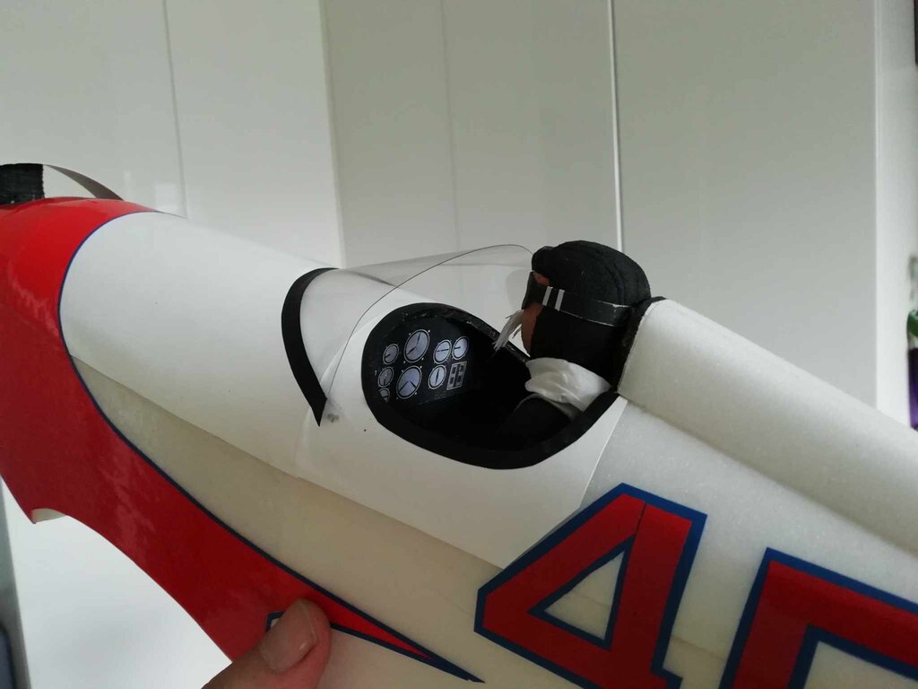 Patryk oblatał już swoją pszczółkę a ja nadal w lesie . Dorobiłem pilota ze styroduru , doszły jakieś "zegary" ,owiewka oraz podwozie