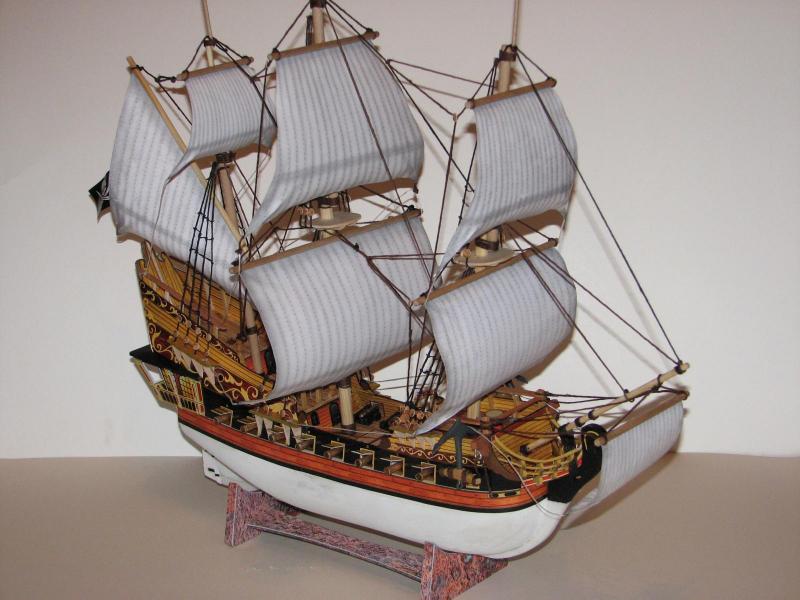 Czas złamać monopol Ryszarda w tym dziale (co nie zmienia faktu że robi piękne rzeczy) i na chwilę odejść od skrzydeł . Nie jest to rasowy model żaglowca jak parę tematów wcześniej pokazał na Vesla tylko zwykła papierowa wycinanka Ktoś poprosił mnie o szybkie wykonanie żaglowca -nie miał być trudny...... Wybrałem ze strony Dysneya darmową wycinankę ,poniżej fotka modelu wykonanego przez kogoś bez modyfikacji . Ale jak na mój gust model był zbyt czerwony więc w photoshopie pozmieniałem co nieco w plikach wycinanki ....tak że w ostatecznej formie niewiele ma wspólnego z pierwowzorem . Jest to mój pierwszy model żaglowca (przynajmniej pierwszy który został ukończony) Może mam małe wymagania co do siebie ale mi się podoba Qrcze ...a w domu ani grama rumu......