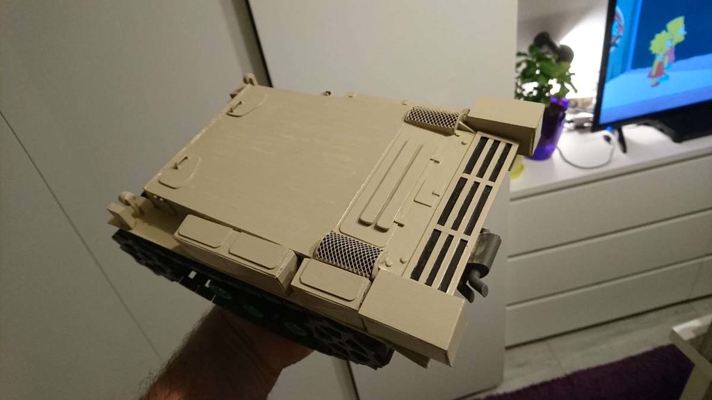 23. Fajnie to wygląda. W śmieszny sposób program tworzy kule (półkule) -nie wiem czemu ale jej powierzchnia kojarzy mi się z piłką nożną Prędkość obrotu wieży jest może ciut za szybka ale myślę że w akceptowalna. Mirkowi chodziło o doczepienie czegoś z tyłu wieży a nie o zmianę jej osi -jakaś "skrzynia amunicyjna , narzędziowa "jak w T72 lub kosz jak w Abramsie, Merkavie .... czy coś w tym stylu . Też myślę że taka z tyłu optyczna przeciwwaga dla podwójnej armaty By się przydała Ale oczywiście doszukujemy się kształtów zwykłych -czołgowych ,a Ty robisz SF więc nie zwracaj mocno uwagi na to co piszemy