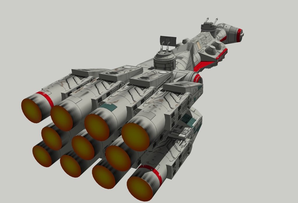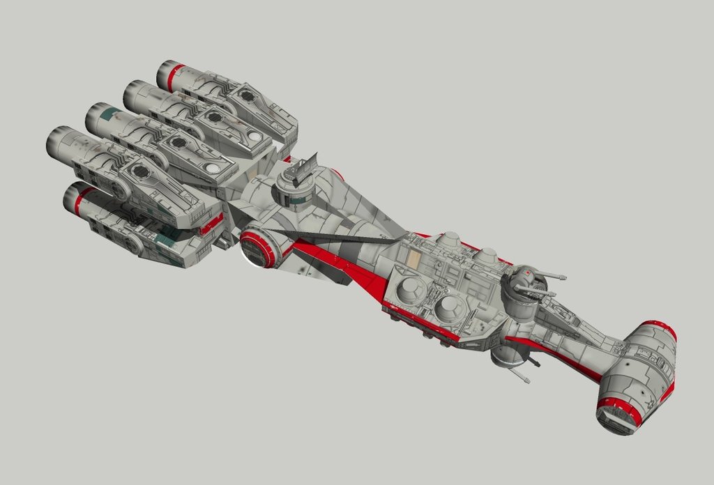 8. Jakiś czas temu moja wypocina powstała w Sketchupie wylądowała na stronie Disneya - model kartonowy jak w tytule Sam nie miałem czasu dokończyć modelu z tej wycinanki ale może ktoś będzie chętny to zapraszam - https://disneyexperience.com/images/temp/downloads/corellian-corvette.zip Model wprawdzie zajmuje sporo stron ale i tak był to kompromis między zachowaniem prawidłowego wyglądu , możliwie małej ilości części a otrzymaniem sporego modelu (70cm) Chętnym pomogę , instrukcji praktycznie nie robiłem a dodałem tylko kilka screenów modelu 3d takich jak poniżej . Dla fana SW przy aktualnym siedzeniu w domu a braku pomysłów może będzie to jakimś rozwiązaniem na zabicie czasu