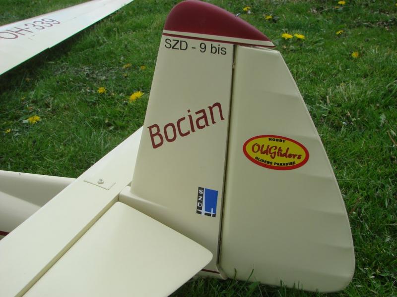Dalsze informacje o modelu SZD-9 Bocian 1c 1:5. Ten egzemplarz jest całkowicie gotowy do lotu, oblot zaplanowany jest na tą niedzielę. Wszystko jednak zależy od pogody. Waga gotowego modelu wyważonego i z pakietem LiPo 2500 mAh to 4200 gram. W modelu mimo iż ster wysokości napędzany jest dwoma serwomechanizmami umieszczonymi na ogonie do wyważenia użyłem 350 gram ołowiu. Uważam, że to dobry wynik. Myślę, że jeśli ktoś chciałby zbudować z naszego zestawu cało drewnianego ten model to jestem przekonany, że można go zrobić przynajmniej o 250 gram lżej, używając lżejszych folii, a serwomechanizmy ze steru wysokości zastąpić można z powodzeniem popychaczami typu bowden. Osobiście nie jestem zwolennikiem takich rozwiązań ale tą kwestię zostawiam dla przyszłych budowniczych. Relację z pierwszego lotu postaram się umieścić tak szybko jak to będzie możliwe. W budowie oczywiście jest model SZD-9 Bocian 1e 1:5. Można tą budowę śledzić na naszej stronie internetowej. Myślę, że pierwszy egzemplarz powstanie do końca kwietnia. Kolejna informacja, myślę że równie ważna. Niebawem do produkcji zostanie wprowadzony ten sam SZD-9 Bocian 1c 1:5 i SZD-9 Bocian 1e 1:5 , z tym, że ten model zamiast kadłuba drewnianego będzie miał kadłub laminatowy. Dzięki temu modele SZD-9 Bocian 1:5 1c i 1e będą dostępne w dwóch wersjach: - wersja cało drewniana - wersja z kadłubem laminatowym, skrzydła i stery drewniane. Oczywiście modele będą dostępne w ARC, ARF i KIT.