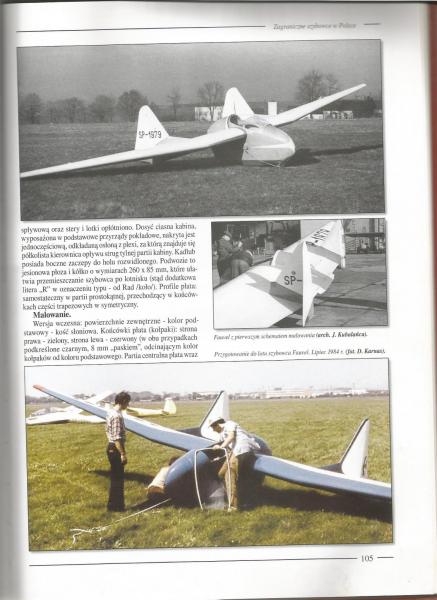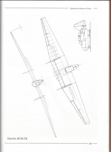 Układ samolotu z klasycznym usterzeniem o układzie płata typu parasol ma niewiele wspólnego z układem płata bezogonowego, jak i skośne do przodu czy do tyłu skrzydła nie mają decydującej roli we wszystkich rodzajach i typach latających maszyn. Nie można wrzucać wszystkiego do jednego worka bo każdy układ płatowca rządzi się swoimi prawami i innymi zasadami aerodynamiki, ale to tylko moje zdanie. Przykładem doskonale latającego szybowca a może latającego skrzydła typu "deska" jest francuski szybowiec FAUVEL AV.36 CR Monoblock. Jeden egzemplarz tego szybowca znajduję się w Polsce na lotnisku Babice w Warszawie. Doskonale również latają modele tego pięknego szybowca. Poniżej skan z książki "Zagraniczne szybowce w Polsce" J. Kubalańca, R. Witkowski. Polecam również lekturę podaną przez kolegę kilka postów wyżej.