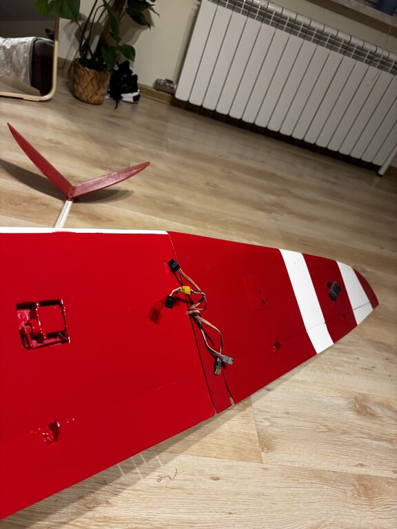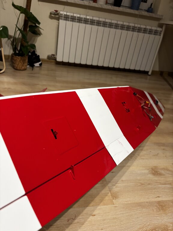 Witam jak w tytule sprzedam modelot fregata wersja V, model sprzedaje z silnikiem i serwami w kadłubie, serwa w skrzydłach są do wymiany[ 2 z 4 serw są prawdopodobnie uszkodzone]. Silnik sumnsky 1400kv, serwa w kadłubie tower pro, skrzydła corona. Model do poprawek lakierniczych, kadłub nie bity, skrzydła tak samo. Cena 390 zł plus koszty wysyłki