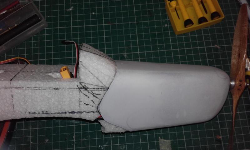 Myślałem nad tym. Ale taką maskę dorabianą będzie widać. Chcę żeby była w jednym kawałku. Do jastrzębia musiałem dodać 40g pod silnikiem. Może tutaj wystarzy masa samej maski. Zresztą do końca jeszcze daleko i kto wie może zmienię plany. Maska nie jest elementem nośnym można zmienić.