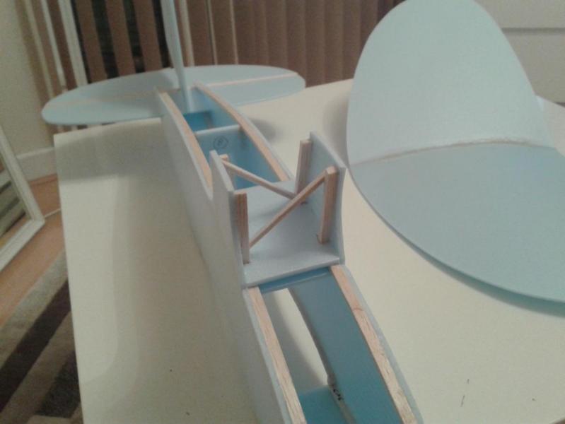 Mikołaj w tym roku się nie popisał to musiałem wziąć sprawę w swoje ręce i samemu zbudować zabawki na nadchodzący sezon. Na warsztat poszły dwa proste combaty których plany znalazłem na tej stronie: http://www.rcgroups.com/forums/showthread.php?t=1386501 To moje pierwsze zabawki tego typu i właściwie mają służyć do stawiania pieszych kroków w combat. To co widać na zdjęciach powstało w dwa wieczory. Dzisiaj będzie malowane. Na obecną chwilę oba ważą po 110g. Ze swojej strony zmodyfikowałem kilka projekty i dodałem lotki. W Aviatkiu zmieniłem też profil skrzydła na KFm-1 Aviatik D.1 Fokker DVII Mam wątpliwości dotyczące profilu KFm-1, na górnych płatach zastosowałem dźwigar z pręta węglowego. Średnica pręta była większa niż podkładu z jakiego wykonałem skrzydło. W efekcie mam taki stopień. Polecieć pewnie poleci. Z dobrym silnikiem to i drzwi od WC polecą. Zastanawia mnie jak to wpłynie na pracę profilu.