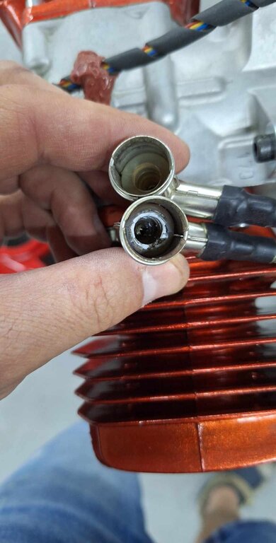 Cześć mam problem z silnikiem 3w, może ktoś z was zna odpowiedź... Silnik pracuje na oleju stihl hp ultra, dotychczas chodzil bez problemu. W trakcie lotu zaczął się dziwnie zachowywać, jak by puchł. Po zdjęciu maski okazało się że jeden cylinder zmienił kolor, jedna ze świec straciła 3/4 elektrody a fajkami jest przykopcona. Silnik na 4 świecach...zdjęcia w załączniku.