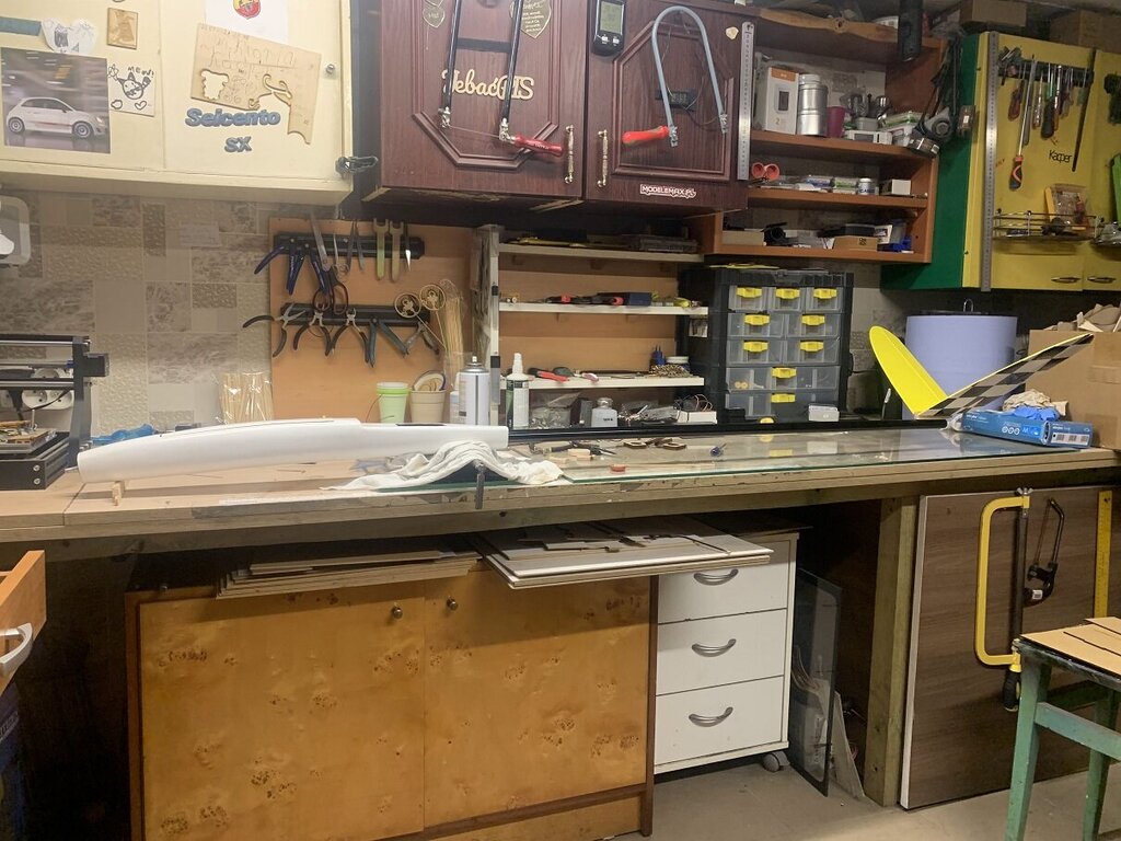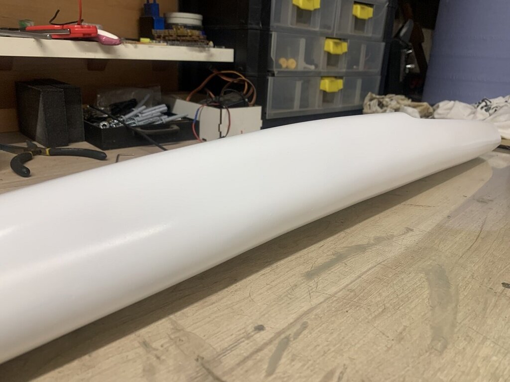 25. Odważyłem się i bardzo mi się to spodobało, obecnie przeszlifowałem cały kadłub nawet jest równo po rozmowie z lokalnym doświadczonym modelarzem kupiłem matę szklana 150g, położę jeszcze jedną warstwę i na to wykończeniową 80g, w niedziele będę szlifować i nałożę szpachle myślę, że będzie ok pierwsze koty za płoty, poskładam i oblatam zobaczymy jaki będzie tego efekt. Następy kadłub będzie lepszy już jestem na etapie kompletowania części do wycinarki cnc na gorący drut, po zbudowaniu drukarki 3D i plotero laserowego Co2 zostało mi sporo części więc ploter się przyda problemu z rysowaniem nie mam więc kadłuby i skrzydełka będą się wycinać i będziemy testować.