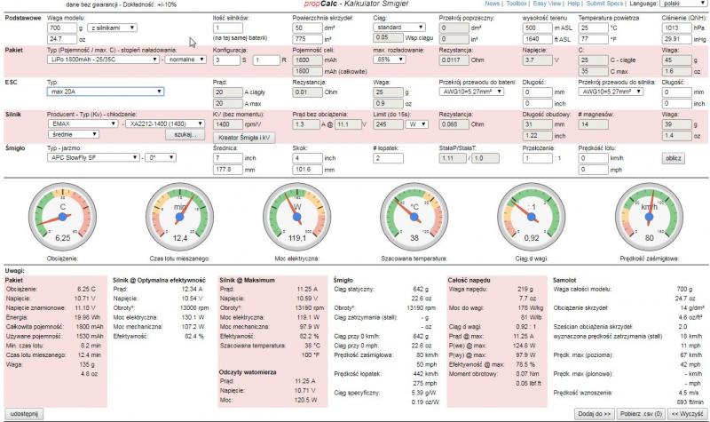 No i elegancko Konrad, trzymam kciuki z pomyślny oblot. A tak na marginesie, nie ma co kombinować na zapas. Nie rzadko kombinowanie przysparza więcej kłopotów niż to jest warte. Przy tym silniku łopaty APC 6x5,5 lub 7x5 lepszy wybór byłby APC Slo Flyer 7x4 i mucha nie siada.