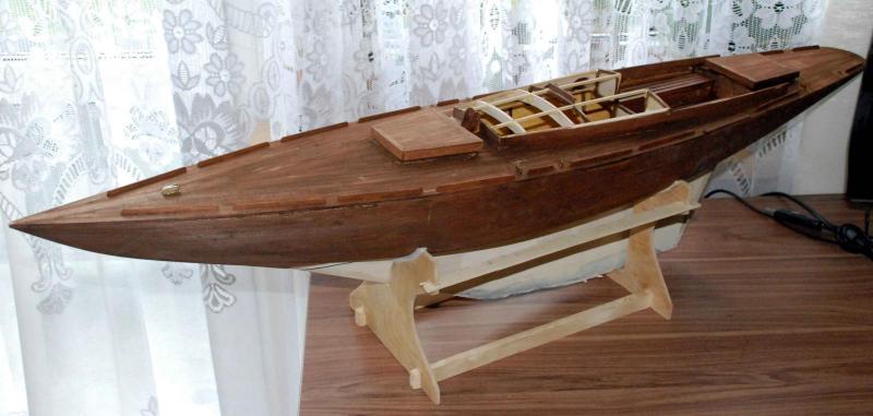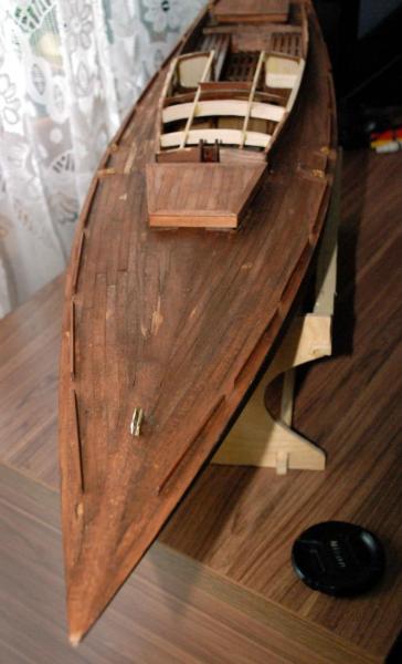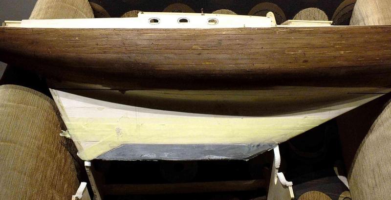 Wyglada jak wygląda, ot taki sobie stateczek z żaglami. Trudno mi określic kiedy nastapi wodowanie. Testy w wannie pewnie już niedługo, ale do wodowania to ho ho ho. Na razie doszlifowałem doklejony balast to profilu kila i przygotowałem listwy odbojowe. Pociąłem trochę "patyków" na stop reling, teraz musze to wybarwić. Po przyklejeniu do kadłuba ewntualne zabrudzenia żywicą wyglądałyby bardzo nieładnie. Epoksyd niestety nie przyjmuje bejcy i się nie barwi. -