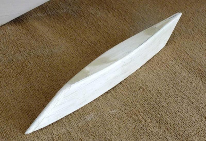 Niewątpliwą wadą jachtów żaglowych jest uzależnienie od wiatru. Gdy wodowałem MINI, wiaterek był na miarę, słabiutki, ale coś tam dmuchało. A dziś "zero". To i wyszło zero pływania. Jutro też nie wygląda w prognozach najlepiej. Trudno. Raczej nie zdecyduję się na silnik . Spróbowałem malować na balkonie, ale wszechobecne pyłki trochę mi zmarnowaly pracę. Przydaloby się odrobinę deszczu. Na zdjęciu porównanie kształtu dwóch kadłubów o tej samej długości (dwie stopy i dwa cale).