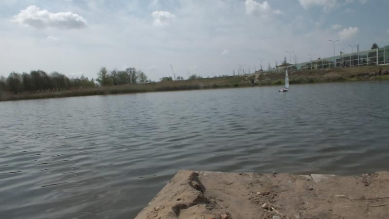 Wodowanie i pierwsze testy na wodzie to już historia. "Balaton" to dobry, bezpieczny, kameralny zbiornik, odpowiednia głębokość i spokój. Kilku wędkarzy i paru spacerowiczów. Jacht dotknął wody o 1000 (zgodnie z planem). Warunki idealne, lekki wiaterek, cieplutko w sam raz na pierwsze testy modelu na wodzie. Model wymaga pewnych drobnych korekt (o tym troszeczkę później), najważniejsze pływa najczęściej dziobem do przodu, wnętrze suchutkie, większość rozwiązań zdała egzamin. Samo taklowanie jachtu do pływania i roztaklowanie to około 3-4 min. Na początek trzy zdjęcia.