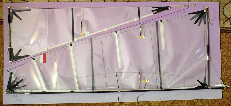 I to jest właściwa koncepcja. Kleić i pływać. Nasza folia nie jest przezroczysta, jest lekko mleczna. Porównanie z przezroczystą. Widać różnicę. Wiatr dzisiaj nie dopisał, niestety. Znowu zero pływania.