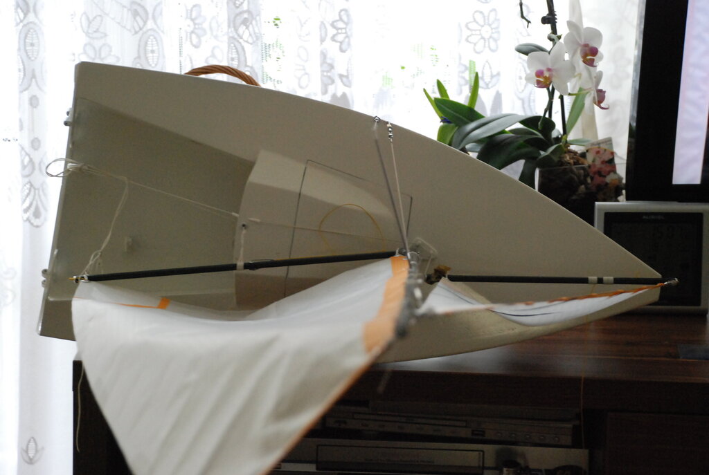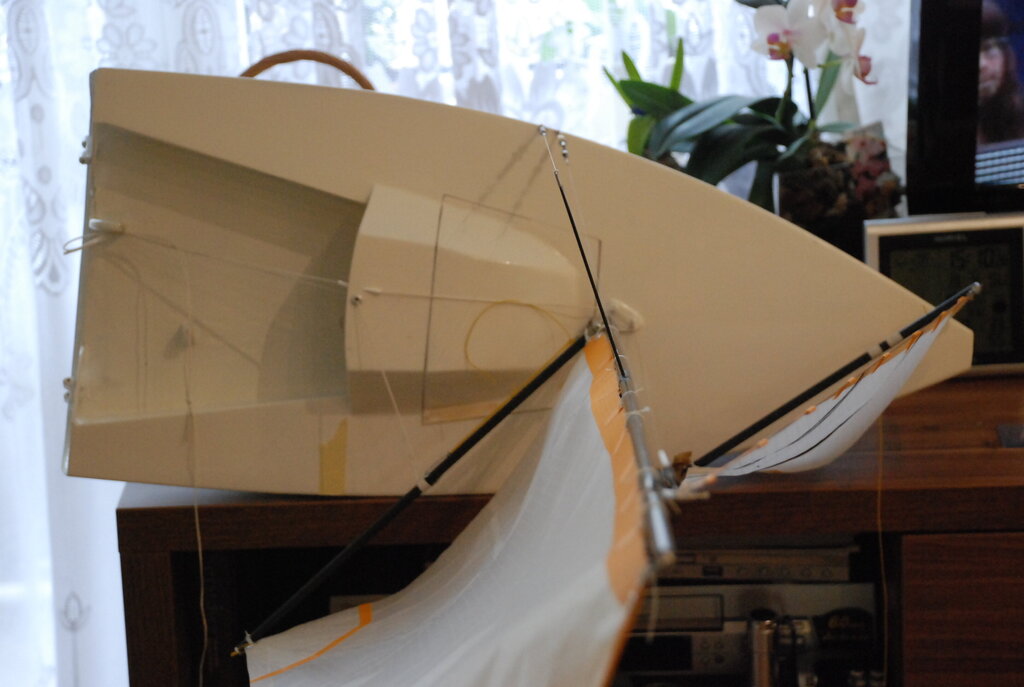 Układ szotow ktory zastosowałem w Gringo - 1jest tylko jednym z wielu rozwiązań. Tu z racji wielkości łódki chyba będziesz musiał pmyśleć o windzie ( z nawijakiem). Dużo zależy od tego co to będzie. Z drugiej strony można korygować długość wybieranego modyfikując średnicę nawijaka. Tak zrobiłem w EL Draco. Zamiast firmowego, zrobiłem własny ze sklejki. Odbiornik i serwo steru możesz umieścić na rufie w achterpiku, serwo szotowe i zasilanie jako najcięższe elementy, pod podłogą. Mój mały RWD ma przerwę w lataniu. Czekamy na lepsze czasy i nie bardzo mam gdzie latać. Jest dużo mniejszy od Twojego, ma tylko 1300 mm rozpiętości (1:8). Jest lekki, gotowy do lotu to bodajże 930 g. Przy tej rozpiętości wynik nie jest najgorszy, szczególnie biorąc pod uwagę że ma stosunkowo ciężkie pokrycie. Początkowo planowałem papier japoński, mam jeszcze stare zapasy, ale póżniej pokryłem go płótnem i pocelonowałem. Projekt własny oparty na różnych rysunkach prawdziwego samolotu. Kilka zmian - wprowadzenie lekkiego wzniosu (górny dżwigar płata jest w poziomie), niewielkie zwiększenie rozpiętości statecznika poziomego przy zachowaniu cięciw. Zrezygnowałem z kilku przełamań poszycia kadłuba, dałyby tylko dodatkowy ciężar. Profil skrzydła to modyfikacje CLARK-Y, zrezygnowałem z oryginalnego profilu, Clark po prostu jest łatwieszy do montażu. Łączniki płatów pręty węglowe. Gdzieś na forum są zdjęcia. Cały czas czeka jeszcze na dokończenie "Muszka", to taki ponad dwumetrowy szybowiec do zabawy, sylwetką przypominający szybowce z połowy ubiegłego wieku. Mocno się już zakurzył. A Twój RWD jest bardzo ładny i będzie dobrze latał. One wszystkie dobrze latają. Mój zachowuje się jak każdy lekki wolnolatający samolocik, wrażliwy na wiatr, ale w spokojnym powietrzu dający mnóstwo przyjemności.