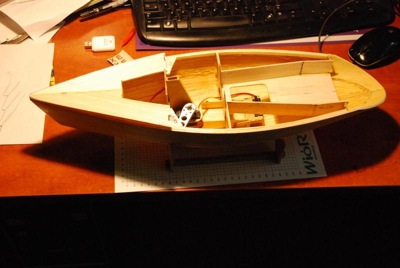 Jesienią ubiegłego roku pierwsze MINI pojechało na Mazury. Pływanie modelem po dużych jeziorach sprawilo sporo przyjemności, ale powodowało również spore komplikacje pod pokładem. Skrzynka w której mieści się jacht to 1050*450*300. Sporo. Dlaczego taka duża? jest przeznaczona na dwa jachty, ewentualnie samolot. Zacząłem mysleć o modelu specjalnie przeznaczonym do zabrania na Mazury. Tak rozpoczął się jeszcze jeden projekt: jacht na jacht. Początkowo myślałem o 12 calówce, ale te jachciki wyglądają bardzo pokracznie. Wiem, że naraziłem się wielu armatorom tych maleńkich pływadełek, ale to jest moja opinia i raczej jej nie zmienię. Na pewno ich zaletą są rozmiary. RG-65 to już spora skrzyneczka, może nie tak duża jak ta do MINI , ale swoją długość musi mieć. Nominalnie maszt może mieć 110 cm. Skrzyneczka musi być solidna, każdy kto spędził trochę czasu pod pokładem niewielkiego jachtu płynącego na trochę większej fali będzie wiedział dlaczego. Wszystko musi być poupychane i zablokowane przed możliwościa ruchu. Inaczej zbieramy to z okolic zęzy, jeżeli taka jest. Przyglądając się różnym jachcikom bardzo dobre wrażenie zrobił na mnie Graupnerowski Micro Magic. Dobrze pływa, rozmiary nieza duże. Akurat na mojego Conrada 600. Jednym z jachtów który mi się podoba jest starszy i większy brat mojej 600-tki, Conrad 760. To piękny jacht regatowy zaprojektowany przez Petersona i budowany przez lata w Gdańsku. Postanowiłem jego sylwetkę przyjąć za punkt wyjścia przy tworzeniu maleńkiego jachtu na jacht. Nazwałem projekt „IOR-500”. Tradycyjnie, kilka szkiców ręcznie, linie teoretyczne, wyporność, stateczność, zrównoważenie, plan żagli itd. Modelik jest malutki i o to chodziło. W porównaniu do dużej stoczniowej „ćwiartki” zrezygnowałem zaakcentowania stepki pomiędzy płetwą a sterem, trochę komplikowałoby klejenie klepek. I tak są dosyć wredne z uwagi na duży skręt listewk w pobliżu rufy i przy przejściu dziobu w stępkę. Konstrukcja tradycyjna : klepka balsowa 3 mm pokryta laminatem szklano-epoksydowym, szczątkowy szkielet. Pokład z balsy 2 mm. Teraz jachcik jest na etapie dopasowywania serw, zaczepów i powoli zbliża się do zamknięcia pokładem. Bulb już odlany, płetwa wstępnie wyszlifowana, do wodowania na wiosnę dużego C-600 powinienem się wyrobić. Przynajmniej takie mam plany. Zresztą na wiosnę szykuje się jeszcze jedno wodowanie: MINI 650.02 i jeżeli wszystko pójdzie dobrze to spłynie również „El Draco” Relacja z budowy nie będzie specjalnie rozbudowana, buduję go moja tradycyjną domową metodą. Narzędzia to piłka włosowa, noże, papier ścierny, wiertarka, imadło. Gdyby ktos chciał spróbowac budowy przygotowałem jakąś skromną dokumentacje: linie, szablony do budowy heligu, plan ożaglowania, zabudowa wnętrza. Wyporność modelu to około 750 cm3, balast 250-300 g. Na poczatek dwie polskie „ćwiartki” i kilka zdjęć z poczatku budowy. Początkowo zastanawialem się nad inna nazwą 3/4 kg (masa)na wzór 1/4 tony ale chyba nie był to najlepszy pomysł. A może macie inne nazwy. Chodzi mi też formuła budowlna po głowie, ale wymaga jeszcze trochę pracy.