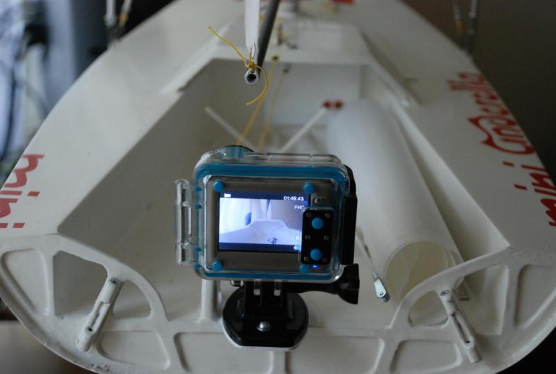 Wakacje, wspaniały czas, chociaż czasem trzeba nałożyć sztormiak. Wróciłem z krótkiego tygodniowego rejsu po WJM, krótkiego ale dosyć intensywnego. Tego co przepłynąłem po Sniardwach i Bełdanach starczyłoby na dwa rejsy Ruciane - Węgorzewo i z powrotem. Na małej łódeczce pojawiła się kamerka. Będę mógł z bliska zobaczyć jak wyglądają żagle podczas pracy. Ocena z z tej odlegości obnaży wszystkie niedoskonałości. Prace nad nowym grotem są dosyć zaawansowane, pozostały do zrobienia : okucia , listwy i kieszenie na wspomniane. Pewnie jutro lub pojutrze zawieszę go na maszcie.