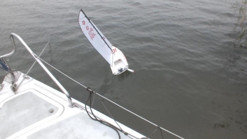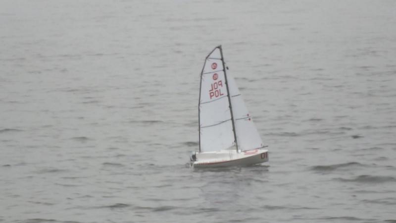 Dziekuję za dobre słowo. Do rewelacji to jeszcze długa droga pełna nieoczekiwanych zwrotów akcji i zakrętów. Staram się żeby każdy kolejny model, który buduję był lepszy, inaczej nie miałoby to sensu. Nr 02 jest raczej kolejnym poligonem doświadczalnym, miejscem gdzie chcę przetestować niektóre nowe pomysły, rozwiązania i poprawność przeprowadzonych obliczeń. Każde kolejne pływanie dostarcza nowego materiału do analizy. Ten jachcik ma być zdecydowanie lżejszy. Mam nadzieję, że uda mi się zrealizować założenia projektowe. Przy pierwszym nie do końca się to udało, ale zdawałem sobie sprawę że w pierwszym w życiu budowanym modelu jachtu nie wszystko będzie OK. Na razie chcę skończyć do wiosny nr 02, tak żeby był jakis materiał porównawczy. Czy będzie 03, dlaczego nie, każdy kolejny buduje się łatwiej, chociaż schody coraz wyższe. Żeglowanie tak ma .Najpierw wydaje się bardzo trudne, pełno niezrozumiałych terminów, jakieś gwarowe określenia na te wszystkie sznurki itd. Po pewnym czasie jest zwrot w drugą stronę, to takie proste, ale później zaczyna się jednak dochodzić do wniosku, że jeszcze bardzo długa droga przed nami i co najgorsze nie wiadomo czy ta droga gdzieś się kończy. Popracowałem nad logo, jest wzorowane na dużej klasie, w końcu to tylko 10 razy mniejszy jachcik. Na najnowszych żaglach juz będzie w wersji chyba ostatecznej. Najważniejsza jest w tym wszystkoim dobra zabawa, zarówno podczas tworzenia projektu, realizacji tegoż i w końcu pływania. Trzy zdjęcia z mglistych Bełdan, tym razem ujęcia z kamery zamontowanej na pawęży. Wyspa w tle to Piaseczna.