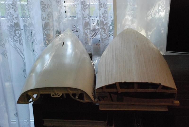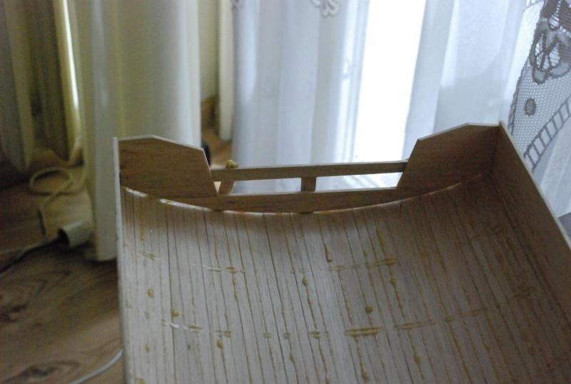 Dziobnica tak powinna wyglądać w naturze. 5 mm nakładka z balsy i 5 mm odbojnicy. Zostało 6 klepek do wklejenia.