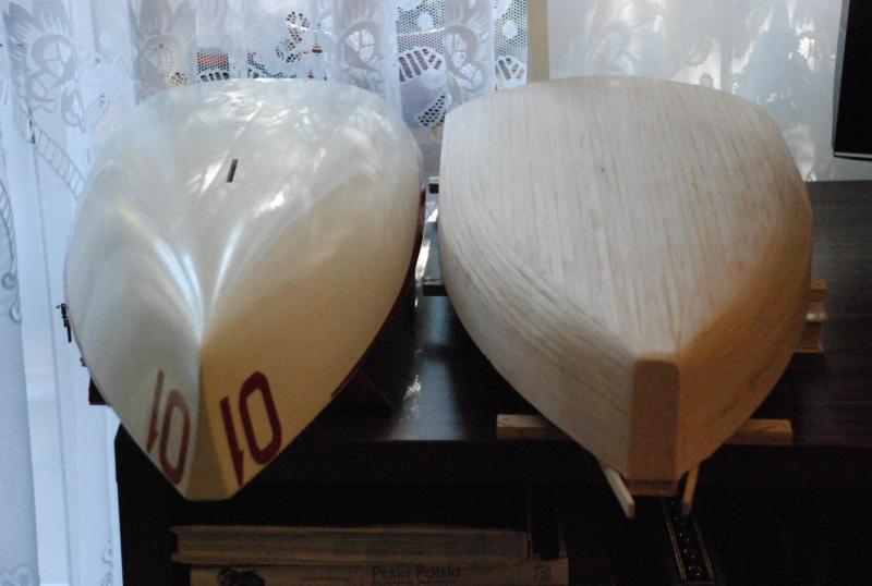 Te starsze jachty mają swój urok. Cieszą oko pięknymi liniami. A podboje, stocznie itd daleko mi do tego, raczej ciekawość, eksperymentowanie i dobra zabawa. Między innymi dlatego na razie zostawiłem drugi wylaminowany kadłub a buduję nowy o zupełnie innym kształcie. Ten pierwszy , to już wiem pływa całkiem nieżle po zafalowanej wodzie, szczególnie gdy zmieniłem trym wzdłużny. Teraz chciałbym sprawdzić jak bedzie to wygladało w przypadku bardzo pełnej dziobnicy. Jako klasa modelarska MINI raczej nie ma szans na zaistnienie, co najwyżej jako ciekawostka. Zobacz jak niewielu ludzi w Polsce buduje zawodnicze modele jachtów. To kilkadziesiąt osób łącznie z juniorami. To temat do odrębnej dyskusji. Na razie muszę dopracować ten pierwszy egzemplarz. Cały czas jest bardzo dużo elementów do poprawienia.