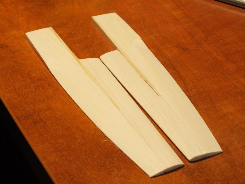 Wstępnie wyszlifowane płetwy sterowe i porównanie wielkości z aktualnymi. Pokleiłem boki skrzynki transportowej i to na razie na tyle. Płetwy będą miały profil dwuwypukły, część bardziej płaska na zewnątrz. Zmiana profilu to jedno, zmiana konstrukcji to drugie. Te będą dużo lżejsze. Pomiędzy balsowy rdzeń jest wklejony dźwigar sosnowy o przekroju od 5*2->4*0,5. Po dokładnym wyszlifowaniu płetwa będzie laminowana szkłem 80 g/m2. Zawiasy też zostaną ulżone. Sporo pracy i jeszcze problemy z szacowną instytucją pt. ZUS. Niestety muszę skierować sprawę do sądu pracy. W środę jadę na Mazury trochę popływać. Czas już najwyższy odpocząć od cywilizacji.