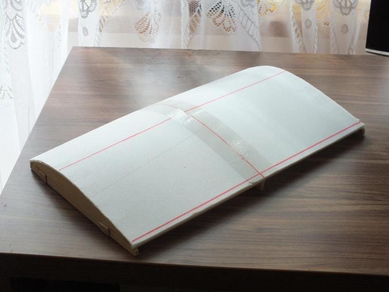 Krótki rejs po północnych Mazurach był wyjatkowo udany. Czas wrócić do poprawiania małego jachciku. Zrobiłem szablony do klejenia żagli , w zasadzie dokładniej by było : do klejenia dwóch brytów. Większy ( cięciwa profilu 320) będzie słuzył do klejenia grota (to ten na zdjęciu) i mniejszy do klejenia foka. Nie testowałem tej metody, czas spróbować. Przed wyjazdem na kolejne żeglowanie, chyba w najbliższą niedzielę, może pokryję szablony depronem.