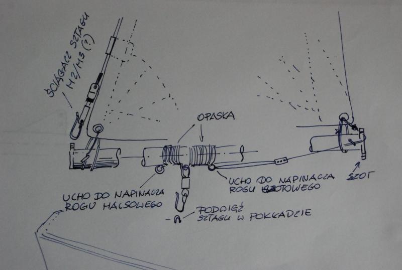 Chcę zrobić bardzo podobnie, jedyna różnica to niezależny naciąg sztagu i fału foka, daje to trochę większe (nie wiem czy potrzebne) możliwości regulacji profilu foka.