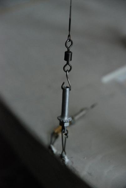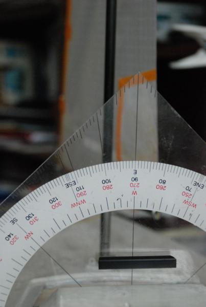 Skończyłem olinowanie stałe. Do tego co ostatnio prezentowałem doszły wanty kolumnowe. W pełni usztywniony maszt pozwolił na przeprowadzenie interesującego pomiaru związanego ze statecznością jachtu. Określiłem statyczny moment prostujący dla przechyłu 900 . Pomiar dotyczył jachtu z płetwą balastową, ale bez wyposażenia. "Kopciuszeka" zrównoważyłem ciężarem 241 G, co daje moment Mr(90)= 2,38 Nm. Jacht podnosi topem masztu około 18% swojej założonej wyporności. W rzeczywistości ten moment będzie nieznacznie się różnił. Na minus dojdzie grot z osprzętem i to że kadłub był podpierany na krawędzi burty a nie w środku wyporu, ale na plus całe zlokalizowane przy dnie wyposażenie o masie blisko 300g. Równie interesujące, ale wżniejsze z punktu widzenie przyszłego sternika było wprowadzenie dużych sił do olinowania i obserwowanie reakcji. Siła rozciągająca wanty w takim położeniu to około 17N. Katalogowa wytrzymałość na zrywanie to 130N, jeżeli zawalcowania wytrzymają, bedzie dobrze. Teraza muszę to roztaklować i zabrać się za malowanie kadłuba.