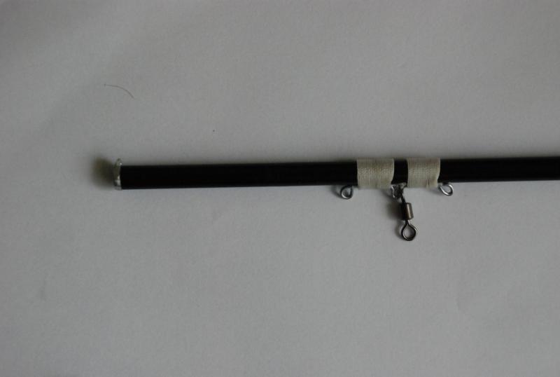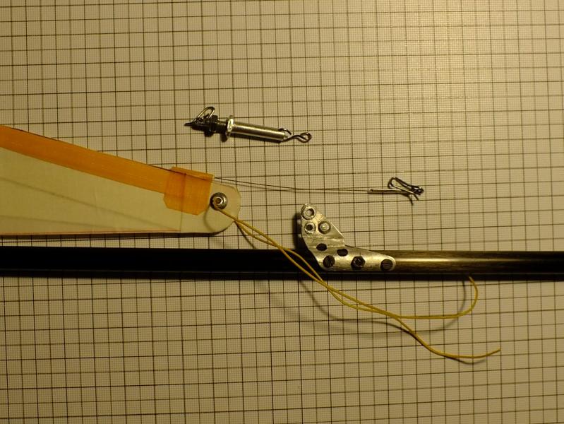 Kolejny malutki krok w układance. Dopasowałem wanty i sztag. Pozostały do zrobienia wanty kolumnowe i wtedy odbędą się próby wytrzymałościowe. Może dziś wieczorem. Na zdjęciach kolejno: - okucie noku salingu, rurka AL o średnicach 3 /2 mm z otworem 1 mm na przepust wanty. Wklejona na pręt CF 2 mm - ściągacz M3 z krętlikiem, na pokładzie leży M2 do want kolumnowych. Poczatkowo chciałem dac bez krętlika ale niewygodnie się reguluje - sprawdzenie pionu masztu - okucia bomu (przód), to rozrysowałem parę postów wcześniej.