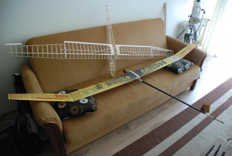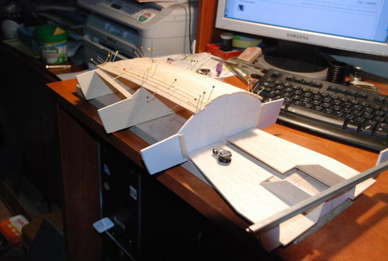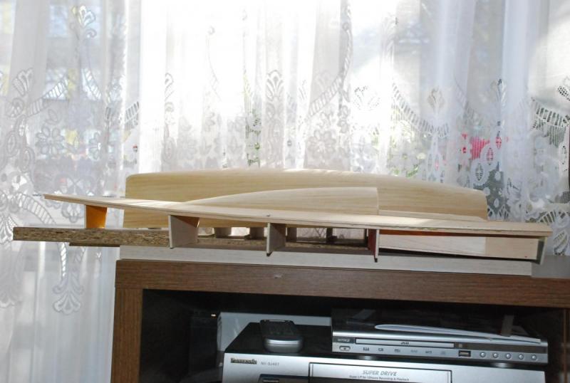 Ja też, Tomku, paski cienkiej sklejeczki 1,0-0,8 przybite do deseczki i sprężyście dociskające statecznik. Andrzej