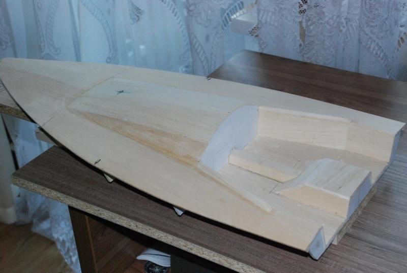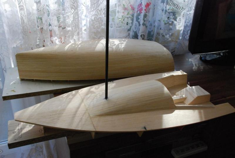 Kolejny mały kroczek do przodu. Pokleiłem kopyto pokładu. Teraz się zaszlifuję. Wyglada jak niedorobione żelazko. Szukałem informacji jak długa jest dźwignia do szotów serwie Hitec Hs 765 HB, ale dysponuję tylko nędznym pomiarem na skośnym zdjęciu. Czy ktoś mógłby, że tak powiem linijką z natury lub z innego pewnego źródła. Pozdrawiam skipper