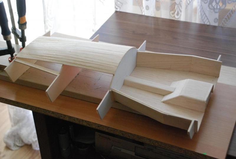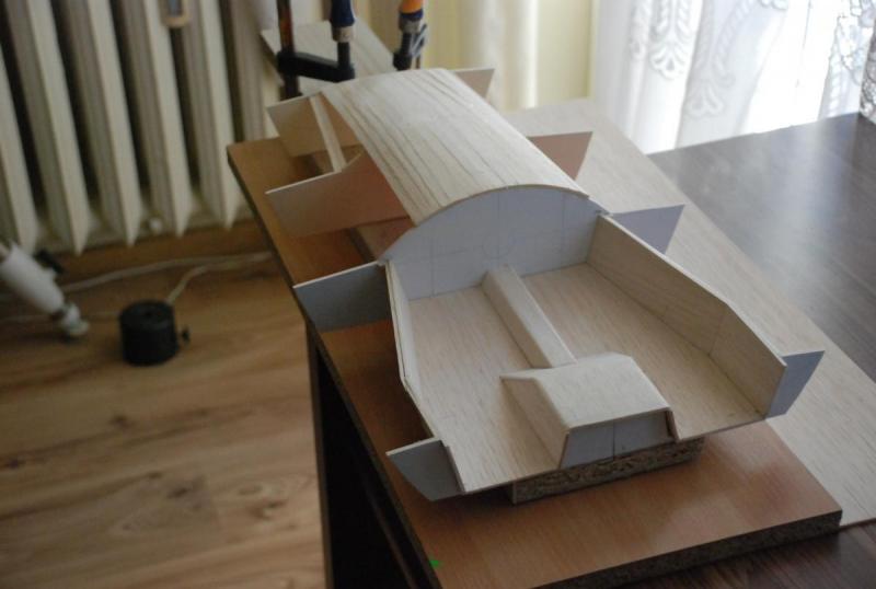 Powolutku do przodu. Prawie cała pokładówka już oklepkowana, podłoga w kokpicie już też jest. Zaczynam dostrzegać kształty małej "Cinderelli" Przód kadłuba jest rozwijalny więc ta część powstanie jako ostatnia. A jutro pewnie dokończę kokpit. skipper
