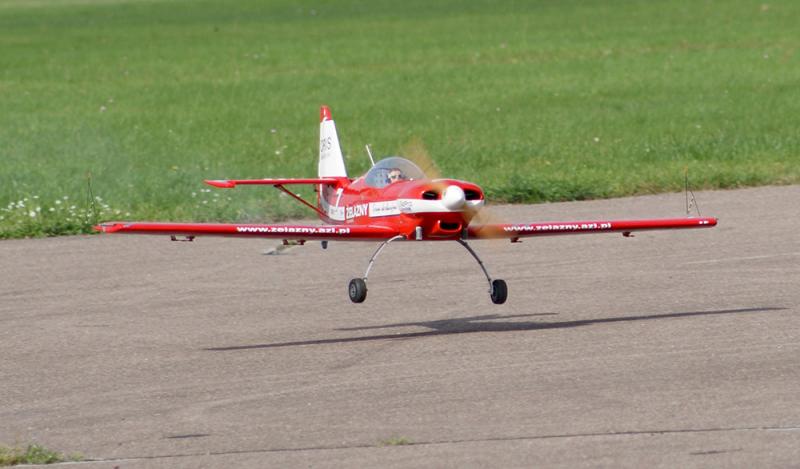 23. Śmigło to 3 łopatowe biela 20/10. Używam paliwa contest 10, zbiornik tak na oko ma może z 400 ml, dokładnie nie wiem bo nie mam na nim oznaczeń był w zestawie z samolotem. Po dotarciu paliwa starcza na ok 20 minut jeżdżenia po pasie i gazowania na max obroty co jakiś czas. Co do zużycia paliwa w locie to nie wiem bo oblot planuję w tą sobotę.
