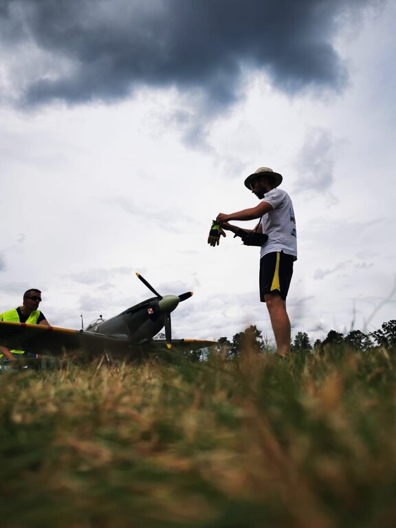 12. Miło mi, że sie podoba. Wybrałem ten model, ponieważ jest ładnie odwzorowany, co niektórym producentom spitfire'a się nie udaje i nie do końca wygląda on jak spitfire, poza tym czytałem, że modele od CARF bardzo dobrze latają, i mogę to z czystym sumieniem potwierdzić. A powód dla którego nie zrobiłem od podstaw jest prosty, nie miał bym aż tyle czasu, żeby w miarę sensownie go zrobić, albo budowa trwała by latami, po drugie nie mam doświadczenia i umiejętności w budowaniu od podstaw większych modeli.